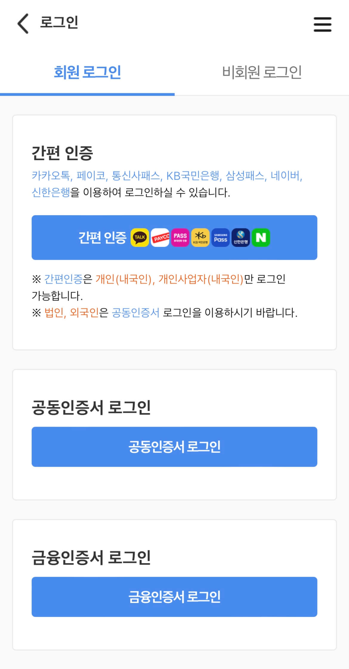 비회원은 로그인 없이 위 경로로 동일하게 신청하시면 됩니다.